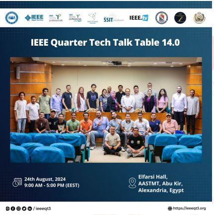 The Quarter Tech Talk Table Series 14.0 was hosted at the Arab Academy for Science, Technology & Maritime Transport (AASTMT) – College of Engineering and Technology, Main Campus Alexandria, in collaboration with five partner organizations. Held on August 29, 2024, this marked the 2nd International Edition in Egypt, featuring the theme “Beyond the Hype: Exploring Technology’s Real Impact.” The event brought together 30+ participants from across Egypt for an engaging discussion on technology awareness, innovation, and career development. Organized in partnership with IEEE Young Professionals, IEEE SSIT (UAT Technical Committee), IEEE HKN Mu Beta Chapter, IEEE YP Egypt Section, and IEEE TV, the session offered diverse perspectives on emerging technologies. All attendees received a certificate of participation as part of this impactful and collaborative tech dialogue.