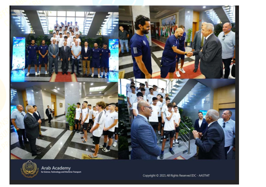 A meeting was held between the President of AASTMT, Prof. Dr. Ismail Abdel Ghafar, and the Valencia NVIS Soccer Academy team prior to their closed camp at AASTMT's AbuKir Campus in Alexandria. The event highlights AASTMT's ongoing commitment to supporting sports and athletes.