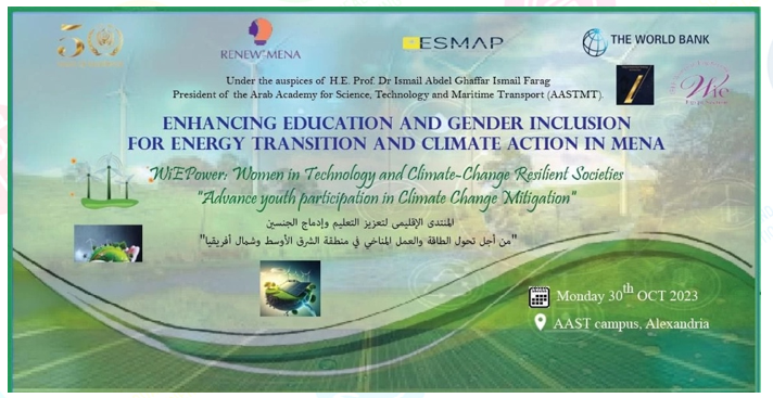 The event was organized in collaboration with the World Bank, the Regional Network for Women in Energy (RENEW MENA), the Energy Sector Management Assistance Program (ESMAP), and the IEEE Women in Engineering (WIE) international scientific society. The forum brought together a wide range of experts from Egypt and various Arab and foreign countries. The forum aimed to strengthen the role of women in technology and climate-resilient communities, and to encourage youth participation in mitigating climate change impacts, aligning with the United Nations Sustainable Development Goals (SDGs). It served as a platform for exchange of ideas, experiences, and successful initiatives, and to promote collaboration in developing educational programs and capacity-building efforts that integrate gender inclusion as a key driver of energy transition and climate action.