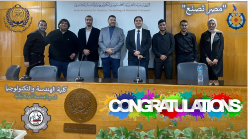 The AASTMT proudly announced the selection of a Mechanical Engineering graduation project from the College of Engineering and Technology – Alexandria Campus among 28 winning projects nationwide in the “Egypt Makes – Local Component Deepening Alliance” initiative, funded by the Academy of Scientific Research and Technology (ASRT) for the academic year 2023–2024.