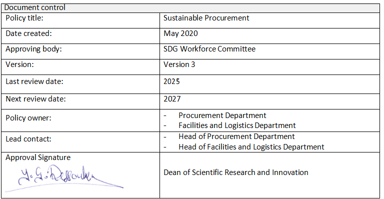 Policy title: | Sustainable Procurement |
