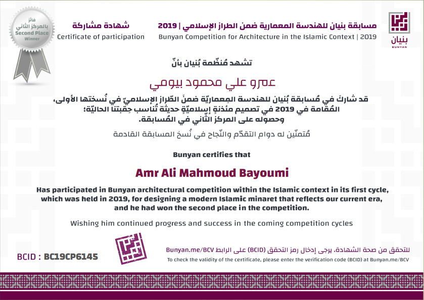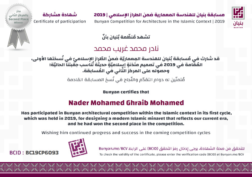 Dr. Nader Al-Gharib, head of Architectural Engineering and Environmental Design Department, College of Engineering & Technology at AASTMT, Port Said, and the team (Dr. Amr Bayoumi and Noha Jalal) won the second place in the architecture competition which was presented by the Bunyan Architectural Foundation as a competition in the Islamic Architecture, on the topic of the development of architectural design of minarets over the different Islamic eras, as an attempt to generate ideas and visions towards a modern Islamic city through a global challenge. ....